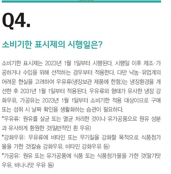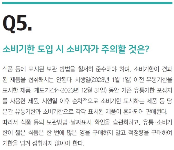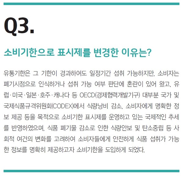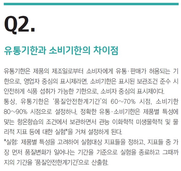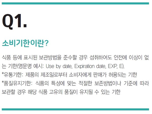 ※식약처의 <소비기한 표시제 관련 질의응답집(FAQ)>(2023.01.18.) 일부를 정리한 것이다. 관련기사 우리 먹거리들의 소비기한은 며칠일까? 콜드체인 인사이트 cold_chain@kakao.com 다른기사 보기 저작권자 © 콜드체인비즈 무단전재 및 재배포 금지 당신만 안 본 뉴스 [특별기고] 중국 내 한국 식품기업의 진출과 물류업체 동향, 그리고 삼양로지스틱스의 약진 – 후편- 마켄코리아, 인천공항에 콜드체인 보세물류센터 신규 오픈 장창훈의 알쏭달쏭 한 특수물류 실무④ 인천글로벌풀필먼트센터, 13일 정식 개장 [특별기고] 중국 내 한국 식품기업의 진출과 물류업체 동향, 그리고 삼양로지스틱스의 약진 – 후편- 개의 댓글 회원로그인 작성자 비밀번호 댓글 내용입력 댓글 정렬 최신순 추천순 답글순 BEST댓글 BEST 댓글 답글과 추천수를 합산하여 자동으로 노출됩니다. 닫기 더보기 댓글삭제 삭제한 댓글은 다시 복구할 수 없습니다. 그래도 삭제하시겠습니까? 비밀번호 닫기 댓글수정 댓글 수정은 작성 후 1분내에만 가능합니다. 본문 / 400 비밀번호 닫기 내 댓글 모음 닫기 주요기사 장창훈의 알쏭달쏭 한 특수물류 실무④ 인천글로벌풀필먼트센터, 13일 정식 개장 마켄코리아, 인천공항에 콜드체인 보세물류센터 신규 오픈 [특별기고] 중국 내 한국 식품기업의 진출과 물류업체 동향, 그리고 삼양로지스틱스의 약진 – 후편- 로지스올, PACK EXPO서 친환경 리터너블 패키징 공개 지오영, 의약품 유통업계 첫 SBTi 승인