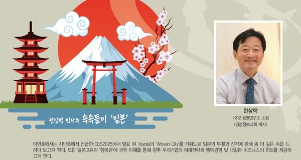 일본인의 행복관에 관해 정면으로 의견을 제시한 논문이나 기사는 흔치 않다. 지금부터는 일본인의 행복관에 관한 필자의 논문 입부발취를 통해 ‘Woven City’와의 연관성을 제시한다. 국가원수의 큰 뜻과 기업, 국민의 뜻이 ‘맞거나’, 업무가 적성에 ‘맞고’, 팀원간의 호흡이 착착 ‘맞으며’ 부부와 연인이 서로 궁합이 ‘맞는’ 상황을 떠올려 보자. 서로가 서로의 다름을 이해하고 존중해서 ‘상대를 맞추어 합해지는’ 일은 분쟁과 대립, 불행을 회피시켜 행복의 토대 역할을 한다. 제품은 품질규격에 ‘맞아야’ ‘합격(合格)’이며 수지타산이 ‘맞아야’ 이익을 낼 수 있기에 맞지 않으면 그때까지의 노력은 헛고생이다. 일본인들의 행복관을 이해하는 핵심은 바로 ‘서로 맞추고 합’하는 ‘合(Awase)’에 있음을 전한다. 반면, ‘合(Awase)’이라고 하니 언뜻보기에 순해 보이지만 실은 그 속에는 ‘合’에 어긋나면 ‘배제하고 배제당한다’는 서슬퍼런 의미와 조직을 위해 암묵적이며 맹목적인 ‘복종과 희생’에 대한 강요가 숨겨져 있다. 이렇듯 개개인은 한올의 실처럼 한없이 여리고 상냥하나 그 실들이 ‘合’해져 조직화되었을 때 괴력으로 돌변하는 이유를 이들의 행복관에서 엿볼 수 있다. 일본의 집단주의사회의 특성이 잘 녹아져있다. 그렇다. 일본인은 ‘화합(和合), 합의(合意), 조합(組合せ), 통합(統合), 융합(融合), 집합(集合), 단합( 合), 담합(談合), 결합(結合)’ 즉, ‘合’의 울타리 속에서 행복과 안심을 느낀다고 해석된다. ‘행복’은 일본어로 ‘仕合せ(Si Awase 시아와세)’라고 한다. 즉, 서로 다른 조직과 각자의 고유가치‘仕(Si)’에 ‘서로 합하고, 맞추고, 조율한다는 ‘合わせ(Awase)’를 결합한 조어이다. 그들에게 부와 명예는 ‘合’의 부산물 정도이다. 그들에게 부와 명예는 ‘合わせ(Awase)’라는 표기는 행복의 알몸이며 행복 ‘행(幸)자로 옷을 입혀 ’幸せ’로 표기하며 동일하게 ‘시아와세’라고 읽는다. 어느 기업이든 ‘회의, 미팅’이라는 주요업무가 있다. 일본에서는 ‘打合せ(우치 아와세)’라는 직역이 곤란한 그들만의 은밀하고 디테일한 엄청난 양의 ‘소통과 대화의 合’의 과정이 전개된다. 바로 ‘Woven’의 핵심이 가치 창조가들의 행복을 담보로 진격하는 일본 ‘대통합, 대결합’으로 분석된다. 자동직기로 나아가 자동차로 과거 세계를 재패했듯이 말이다. ‘合’에 따르는 자 ‘시아와세’ 할 것이며 따르지 않는자 조용히 ‘배제’될 것이라는 양날의 칼이 숨겨져 있음을 이해하자. 현재 일본은 그만큼 간절하다. 끝으로 부? 명예? 권력? 건강? 사랑? 우리 대한민국과 우리기업, 사회, 가정, 개개인을 ‘통합’하는 ‘행복’의 공통된 핵심가치는 무엇인지 이번기회에 깊이 되새겨 보고 싶다. 다음호에서는 ‘仕(Si)’Code의 마지막 개념인 ‘제어개념’을 들여다보면서 일본인의 ‘창조방정식’을 제시하고 일본인의 로봇사랑의 근원에 관해 이야기하고자 한다.