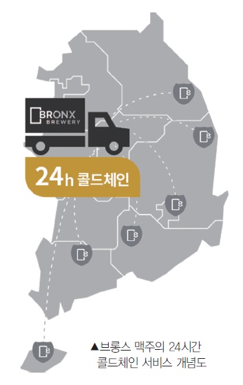 맥주는 온도에 매우 민감한 상품이다. 대부분의 매장에서 급속 냉각기를 사용해 시원한 맥주를 제공하지만 이는 마실 때만 시원할 뿐 맥주 본연의 맛과 품질은 이미 떨어진 상태다. 일반 맥주라면 큰 문제가 없을 수 있지만, 맛을 강조하는 수제 맥주는 그 유통부터 달라야 한다는 것이 브롱스의 생각이다.